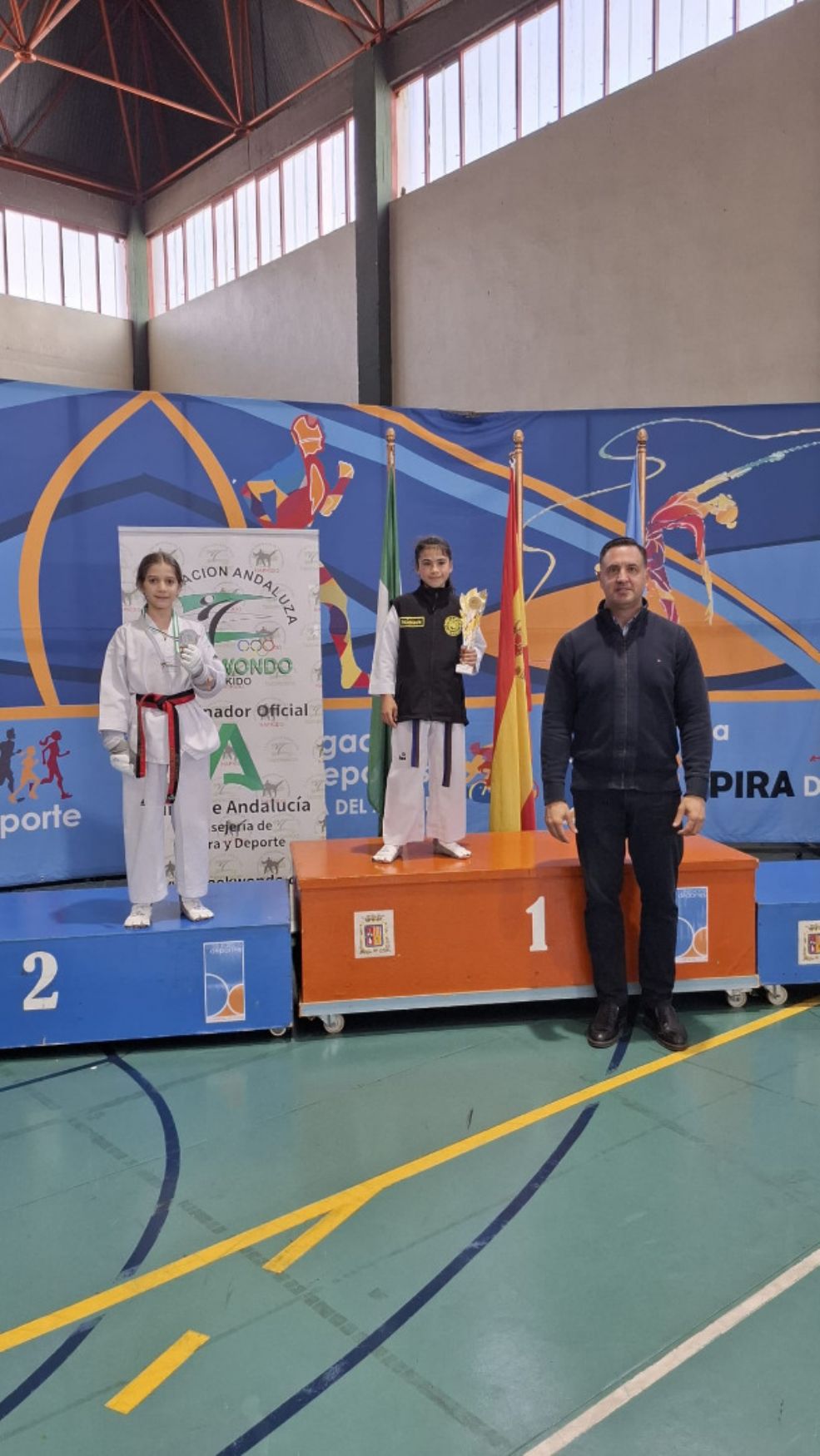 Por otro lado, en el Campeonato de Andalucía “Tú haces igualdad”, nuestras deportistas volvieron a demostrar su gran nivel. Irene consiguió medalla en la modalidad de combate categoría cadete, y Rocío se proclamó medalla de oro en poomsae.